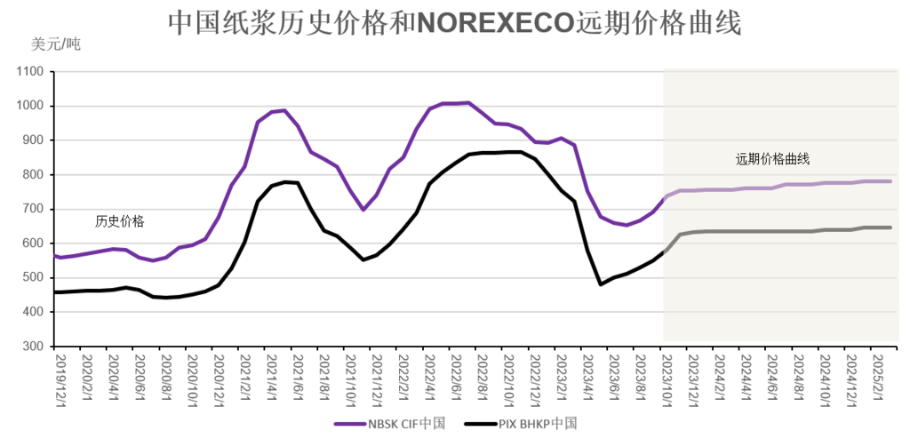 | NBSK CIF中国 | 754美元/吨 | 0.0% | -19.2% |